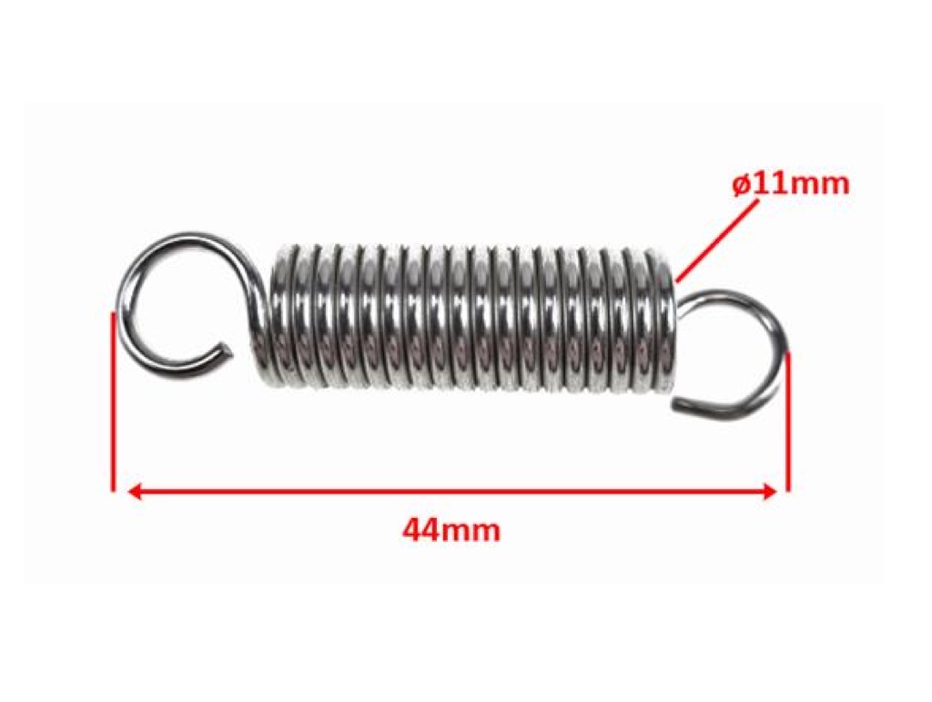 Die Universal Auspufffeder 44 mm dient zur Verbindung von Auspuffkrümmer und Endschalldämpfer bei vielen 2-Takt- und 4-Takt-Fahrzeugen. Sie hält die Auspuffanlage vibrationssicher zusammen und verhindert Undichtigkeiten an der Verbindungsstelle.