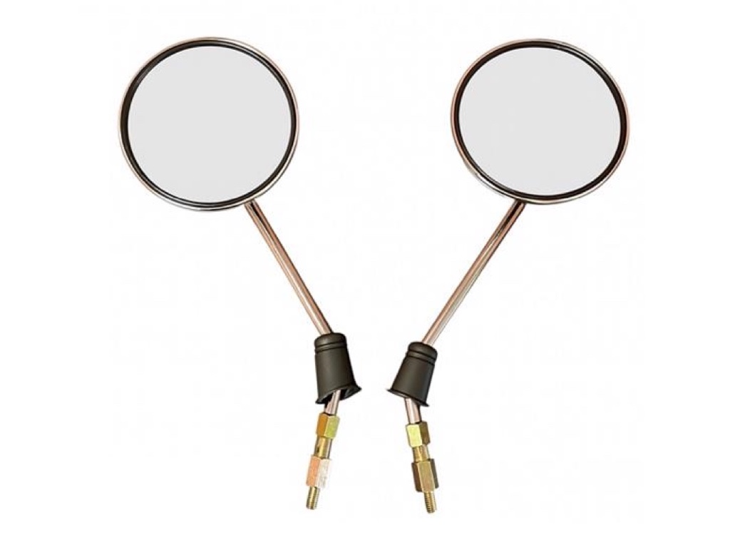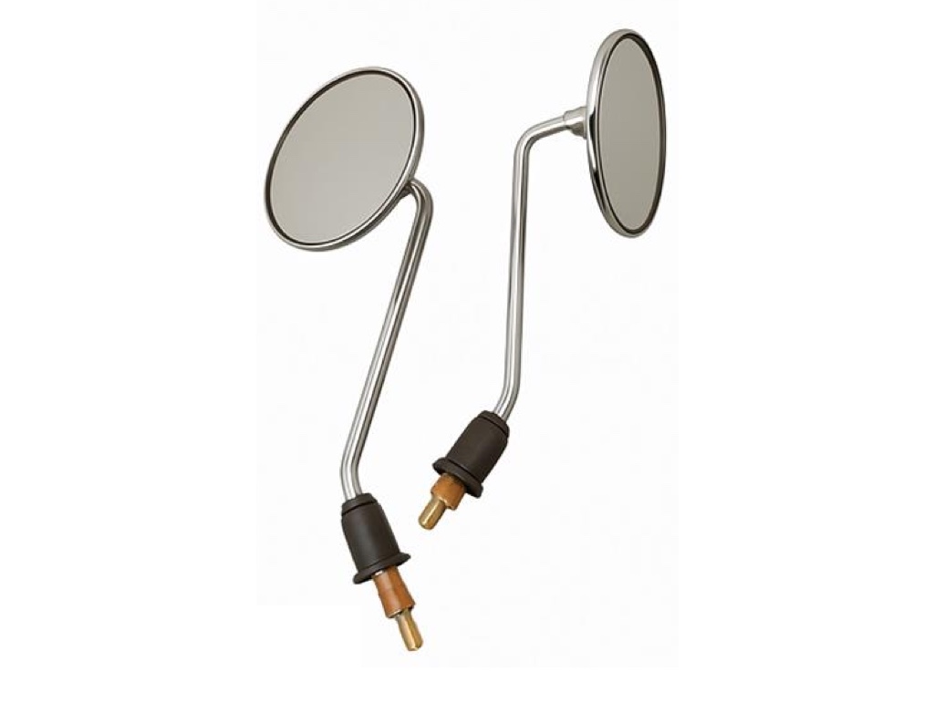 Dieses Spiegel-Set in Chrom besteht aus einem linken und einem rechten Rückspiegel und ist für viele Vespa-, Kymco- und SYM-Roller geeignet. Die Spiegel verfügen über ein M8x1,25 Rechtsgewinde und sind E-geprüft für den legalen Einsatz im Straßenverkehr.