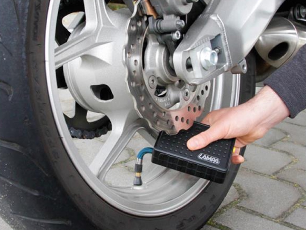 Der Mini Luftkompressor eignet sich sehr gut zum Nachfüllen von Luftdruck bei Motorrad- und Rollerreifen.