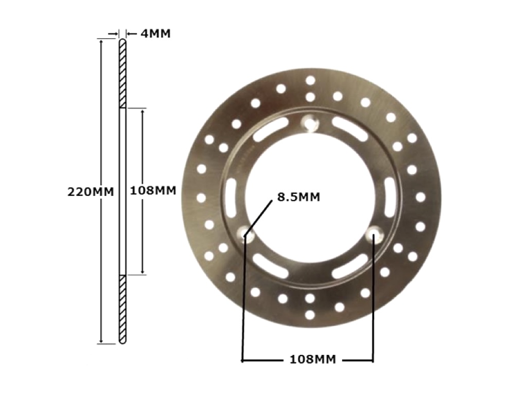 Weiterführende Links zu "Bremsscheibe 220x108x4mm für Motorhispania Rolling Bull Suzuki RMX SMX"