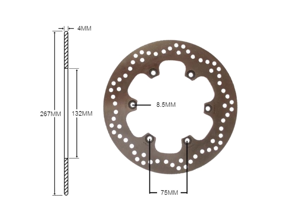 Bremsscheibe für Yamaha FZ, RD, SR, XJ, XV, XP, XT, XS und weitere Modelle – 267x132x4 mm