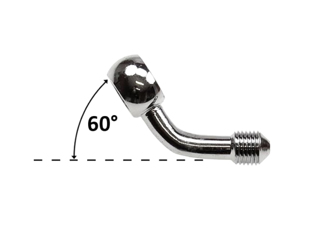 Universal Bremsschlauch-Anschluss / Adapter – 60° Winkel mit M10 x 1,25 Gewinde für Roller, Motorräder und Mopeds. Der abgeschrägte 60°-Anschluss ermöglicht eine optimale Leitungsführung an Bremssätteln oder Hauptbremszylindern – besonders praktisch bei Umbauten oder begrenztem Bauraum.