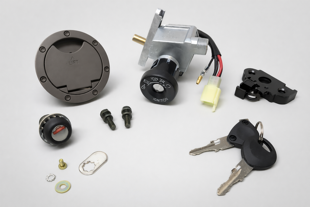 Dieser hochwertige Schlosssatz ist die perfekte Lösung für defekte oder verlorene Schlösser bei Yamaha Aerox und MBK Nitro Modellen bis Baujahr 2002. Er enthält alle notwendigen Komponenten in Erstausrüsterqualität, um defekte Schlösser zu ersetzen oder verlorene Schlüssel zu ersetzen – unkompliziert und passgenau.