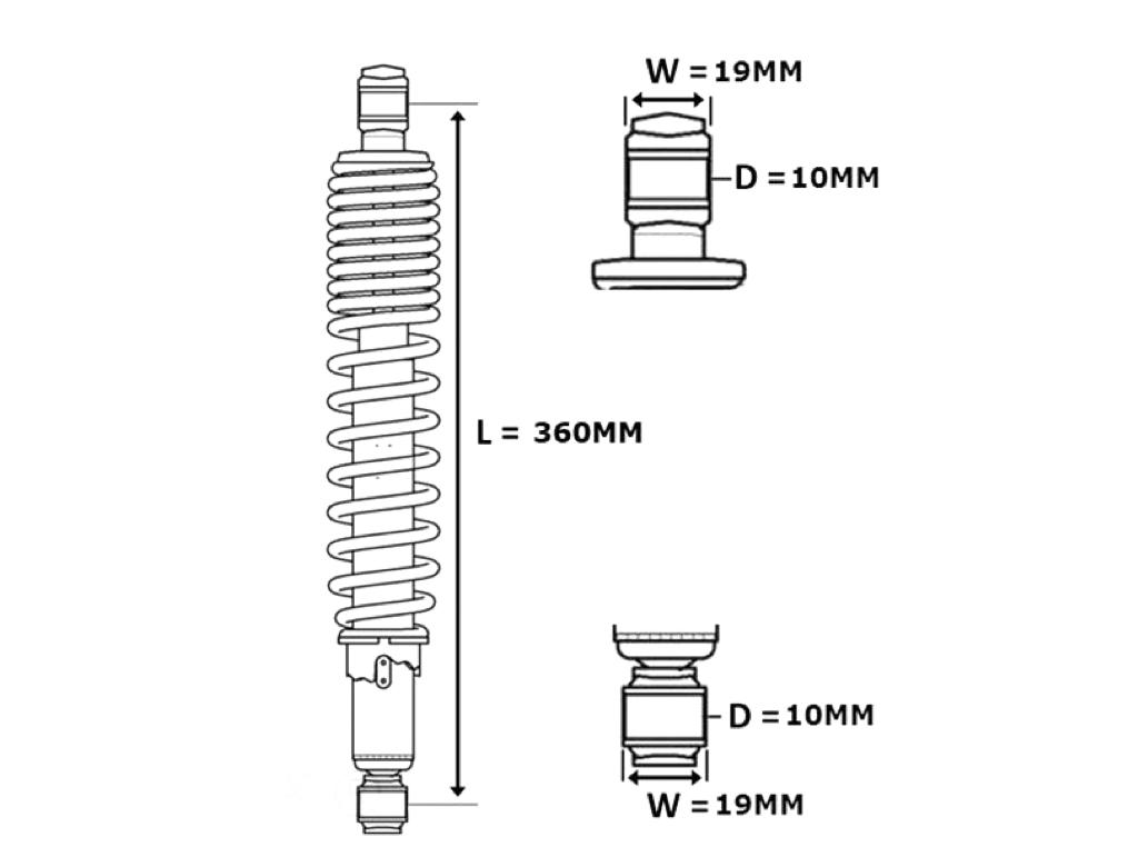 Die Stoßdämpfer verfügen über eine 10 mm Augenaufnahme (innen). Optional erhältliche Reduzierhülsen auf 8 mm sowie Einstellwerkzeuge sind separat erhältlich. Die Montage ist unkompliziert und auch für geübte Hobbyschrauber problemlos machbar.