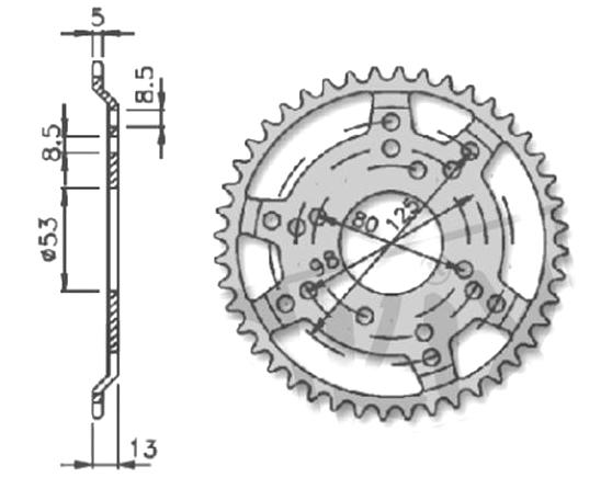 Produktinformationen "Kettenrad Ritzel 53 Zähne für Derbi Senda R 50"