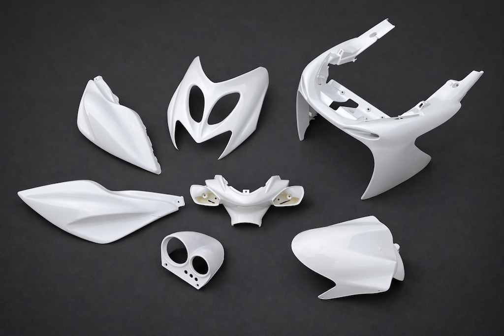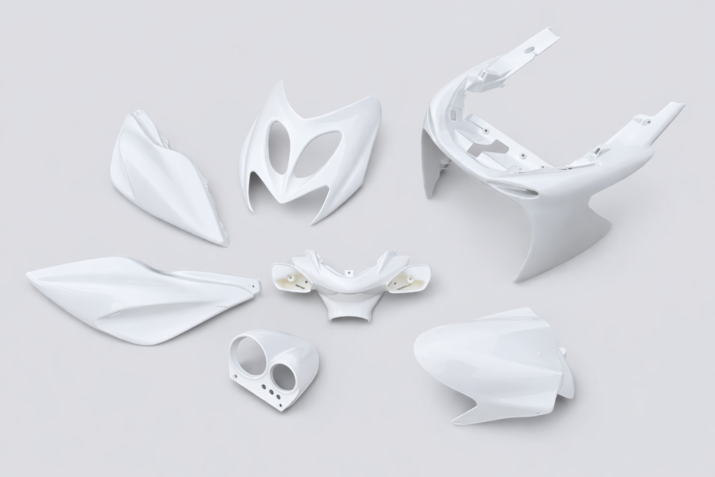 Bestellen Sie jetzt das 7-teilige Verkleidungsset in Weiß Glänzend und verleihen Sie Ihrem Yamaha Aerox oder MBK Nitro Roller einen edlen und modernen Look!